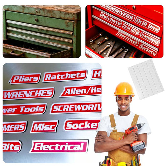 Magnetic Toolbox Labels 12PCS Black Durable 3D-Printed Metal Tool Box Drawer Tags Reusable for Steel Toolboxes Carts Drawers Decor